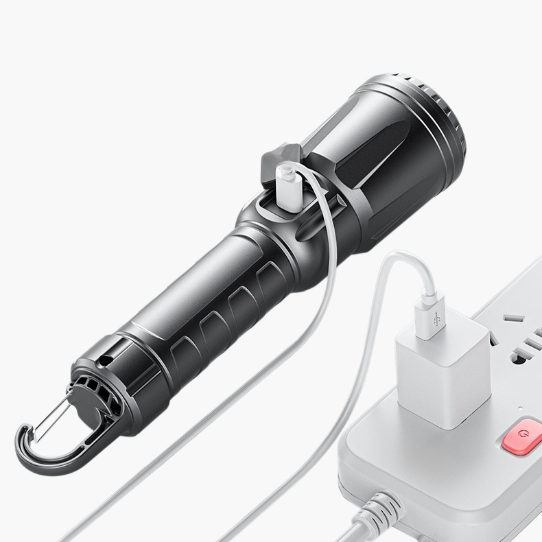 ポータブルズーム強力長距離懐中電灯は、遠距離照射・ズーム機能・高輝度LED・軽量設計・防水仕様でアウトドアや緊急時に最適。